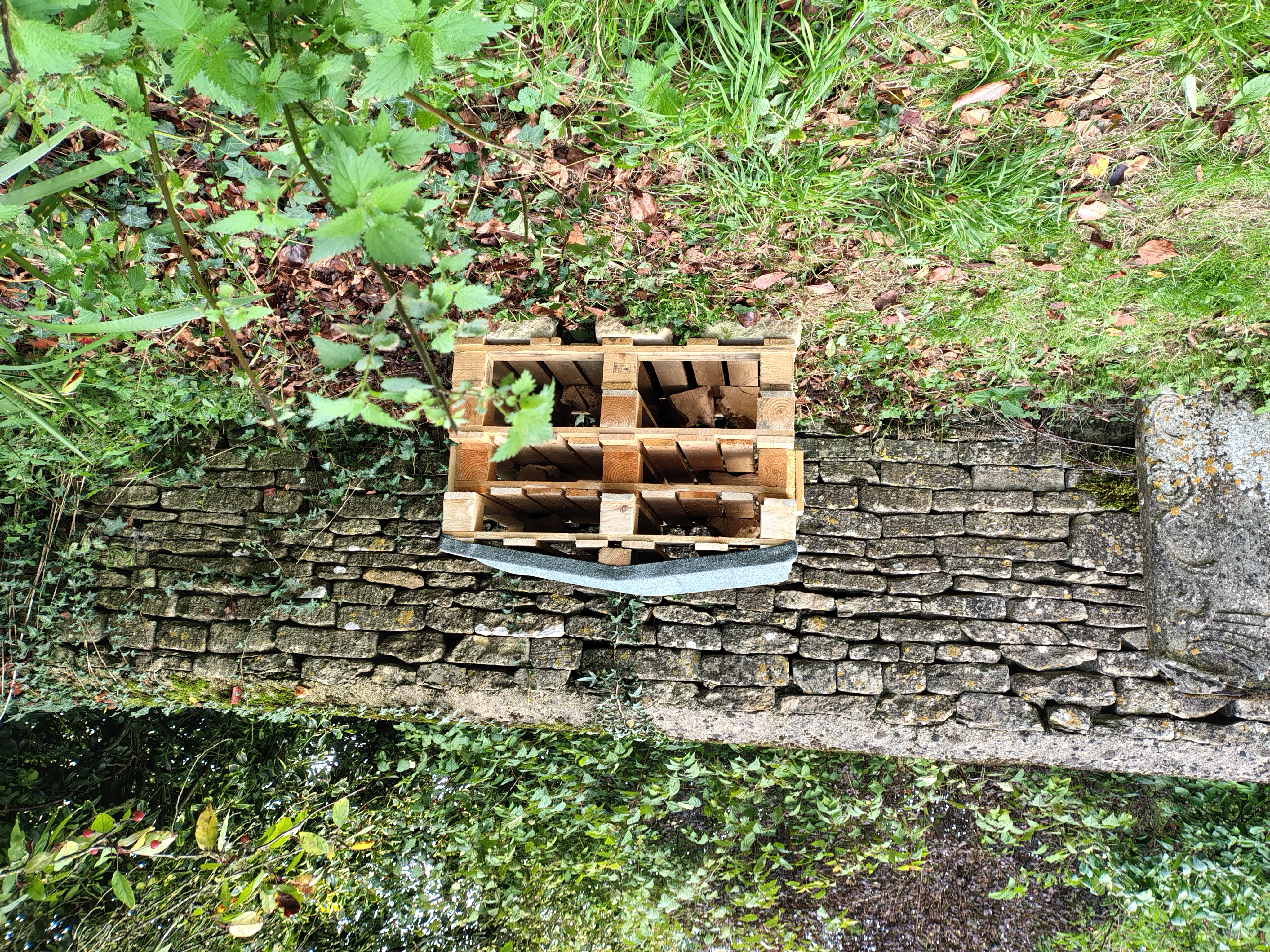 In September 2025 we built a bug house using reclaimed materials. As part of our Source service for Creationtide, we filled it with logs, sticks and other materials to create a shelter for overwintering invertebrates and small animals. We asked people to suggest a suitable name for it and Bugopolis was the one we chose.