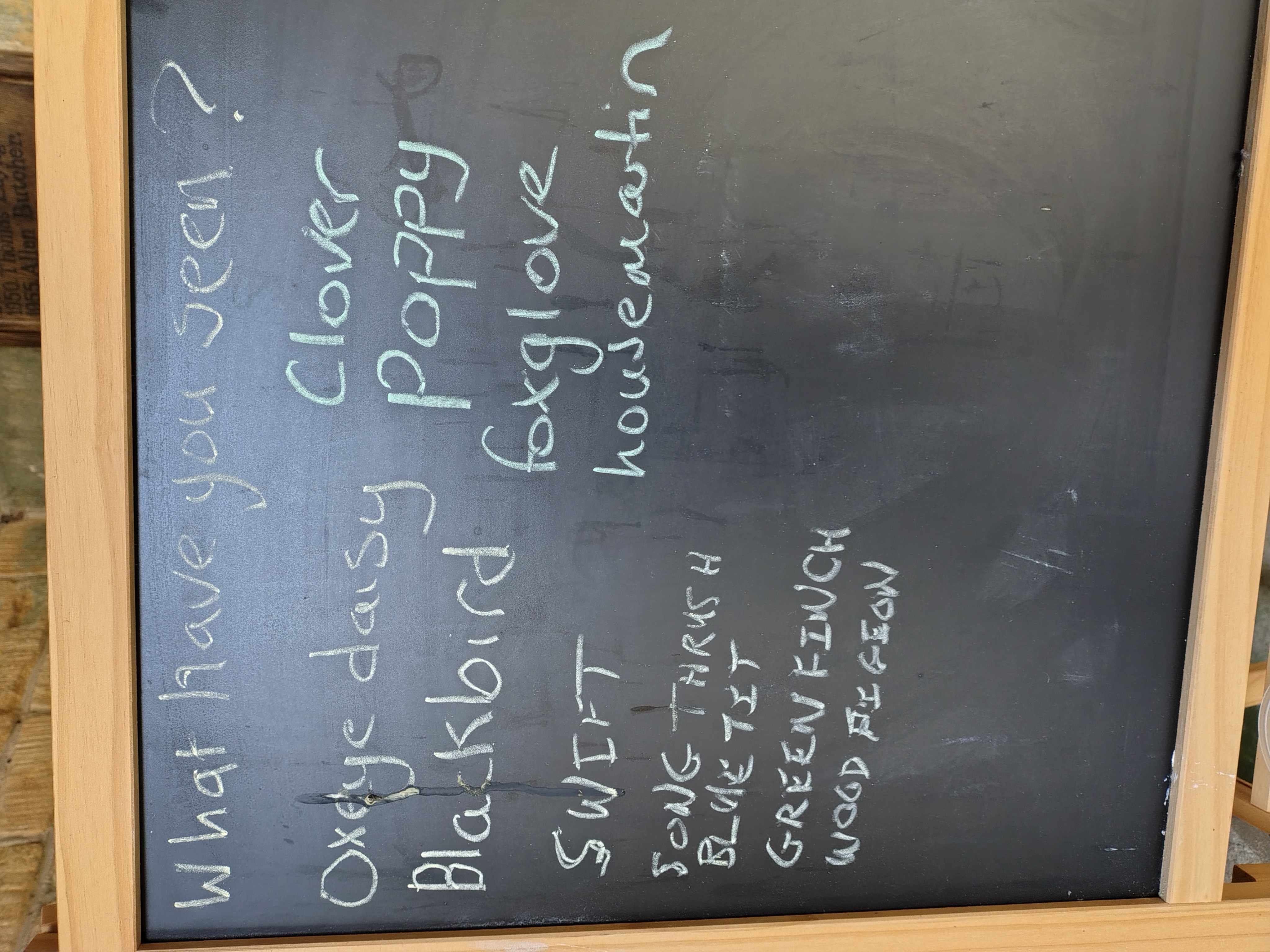 In June each year, we participate in the Love Your Burial Ground: Churches Count on Nature, which is a survey of wildlife spotted in the churchyard. We invite people to spend time in the churchyard recording what they have seen. We leave a blackboard and identification guides in the porch. We update the nature survey to include the new findings.